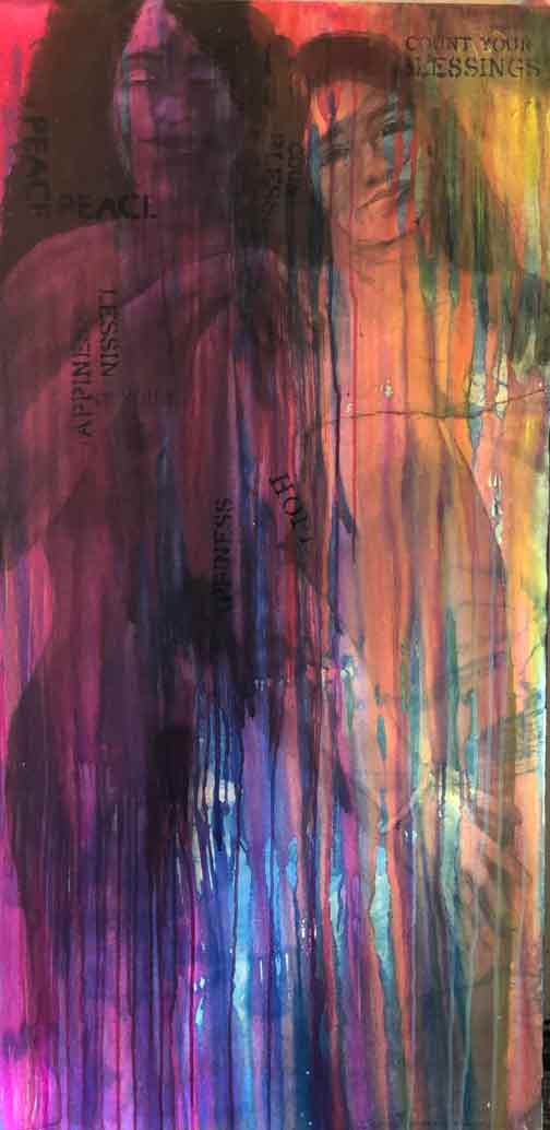 Beau Wild, Counting Our Blessings, mixed media (acrylic, graphite, charcoal), 48” x 24,” 2019 |